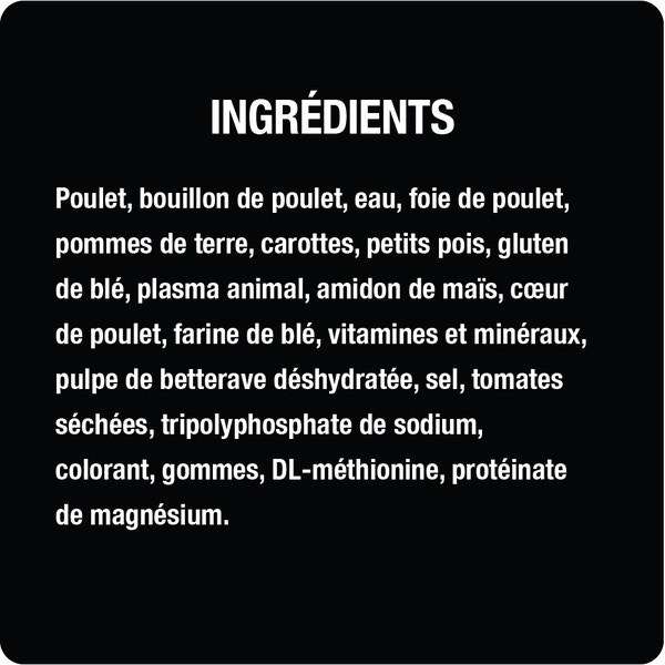 Les chiens sont excellents pour rapporter la balle, mais pas autant pour faire mijoter du poulet. Voilà pourquoi nous avons cuit à petit feu notre repas de poulet, en y ajoutant des légumes comme des pommes de terre, ainsi que des carottes et des petits pois sains, pour le plaisir de votre fidèle compagnon.