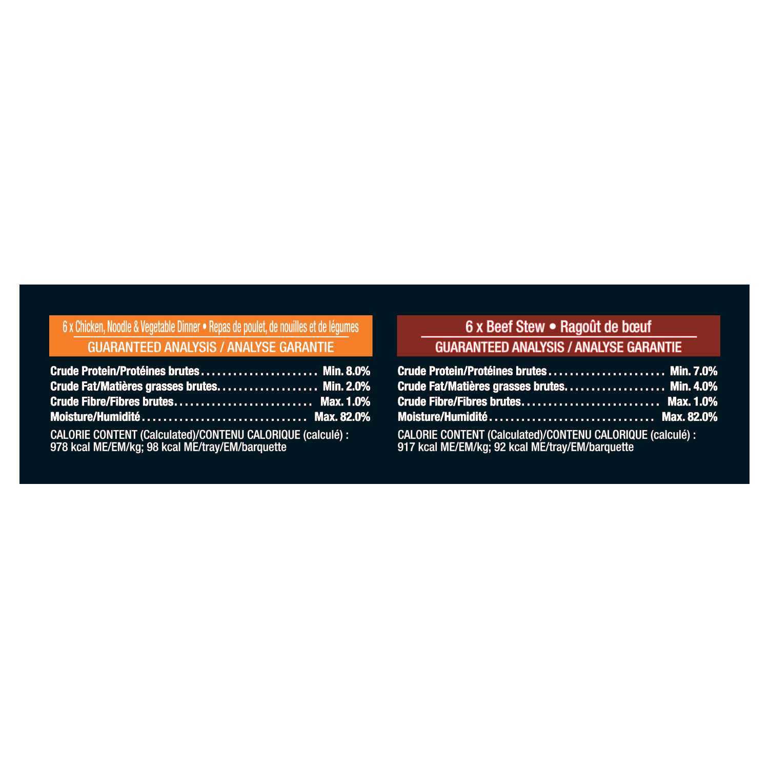 Nourriture humide pour chiens adultes CESAR(MD) HOME DELIGHTS(MD) en format variété – repas de poulet, de nouilles et de légumes en sauce, ragoût de bœuf