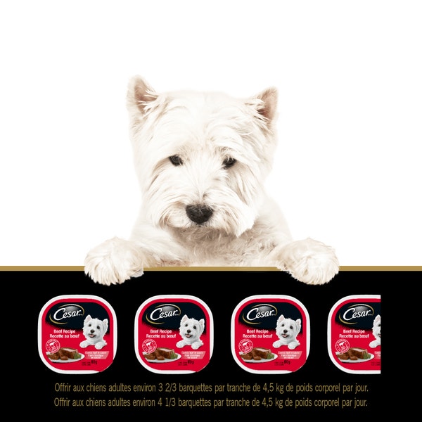 Nourriture humide pour chiens adultes CESAR(MD) pain classique en sauce en format variété – saveur de haut de surlonge et saveur de filet de porc